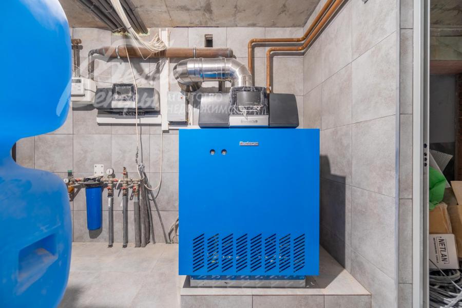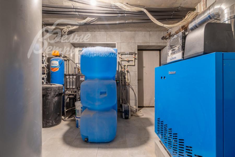 Инженерное обеспечение: все коммуникации разведены до точек, выполнены выводы под электрику во всех помещениях. Отопление – через напольный котёл Buderus на 32 кВт (медная обвязка котла). Горячее водоснабжение – через бойлер Reflex на 300 л (в котельной есть накопительный бак на 500 л). Установлена многоступенчатая система очистки воды Экодар. Вентиляция - принудительная центральная и приточно-вытяжная с кондиционированием и рекуперацией