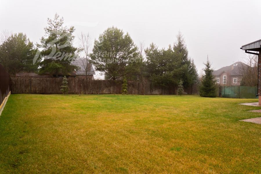 Благоустройство участка: ровный участок с ухоженным газоном и высаженными деревьями: ели, декоративные кустарники. Выложена дорожка к входной группе. По фасаду участка - кованый забор в единой стилистике поселка, с 3-х сторон - светопрозрачное ограждение.